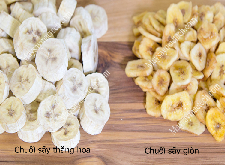 Đối với chuối chín, thường là chúng ta sấy dẻo, còn sấy khô giòn như trong video trên khi ăn sẽ có cảm giác như ăn bột, vì vậy sản phẩm này chủ yếu được dùng để xay thành bột chuối mịn, các loại bột hoa quả chất lượng cao cũng đều được sản xuất dựa trên dòng máy sấy này.